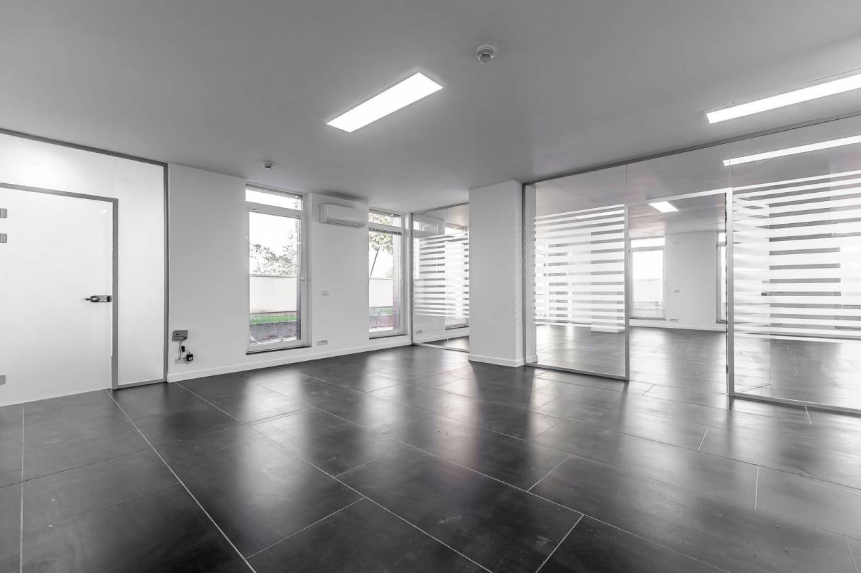 Situat în Arad Plaza, un simbol al eleganței și designului nordic, acest spațiu de 448 mp, cu două terase cu grădină de 80 mp, este definit de luminozitate naturală și o compartimentare inteligentă.