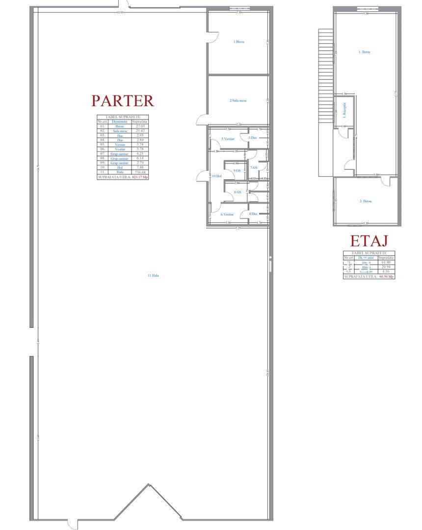 Suprafată birou, vestiare, sala de mese și grupuri sanitare: 87 mp