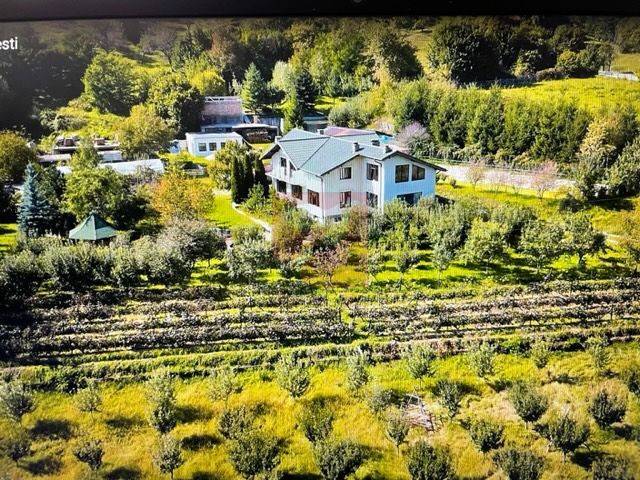 Vorbim de o vila cu parter si etaj complet separate, cu gradina si anexe, pretabila ca pensiune pentru a caza 5 familii, aflata pe o suprafata de peste 18 ha.