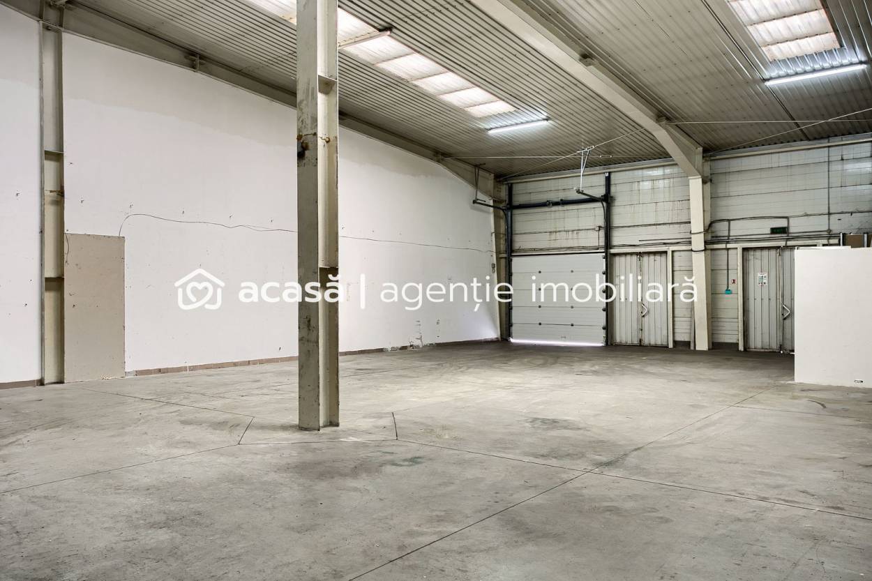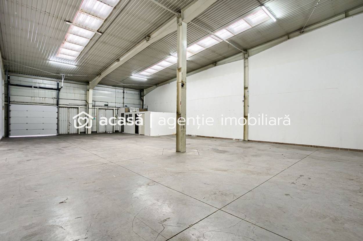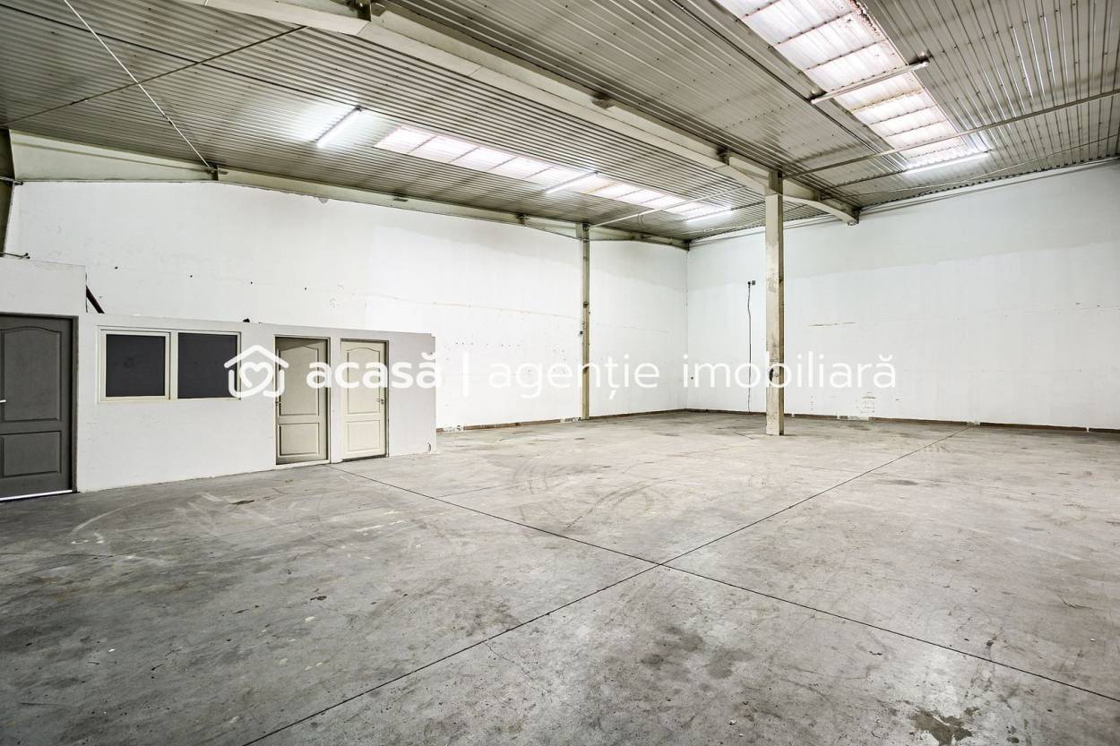 Spațiu disponibil pentru închiriere: hală industrială de 227 mp cu acces facil pentru vehicule auto și posibilitate de compartimentare flexibilă.