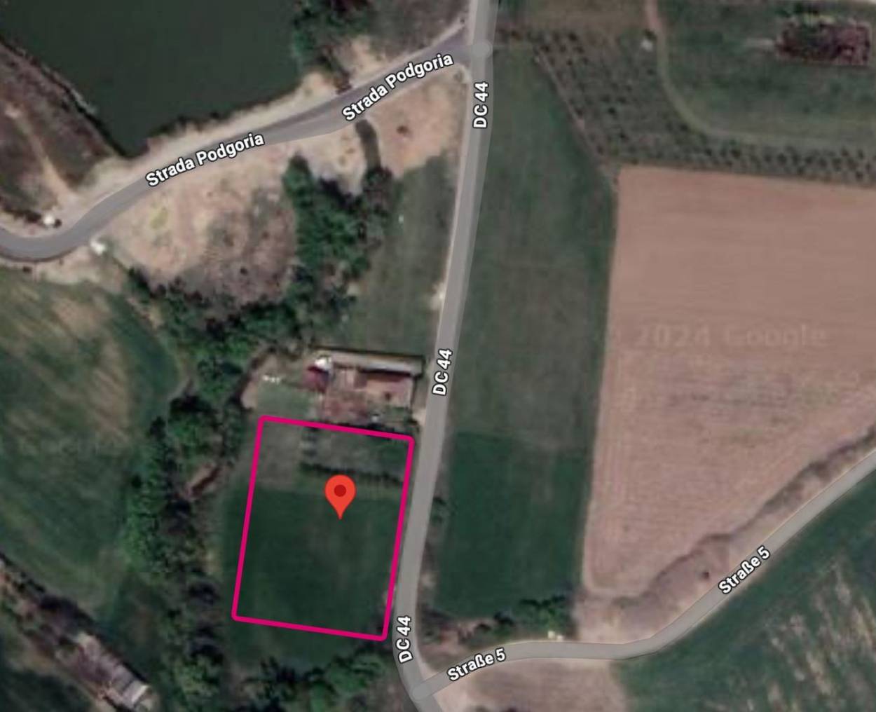 Frontul stradal este de 70 metri, adâncimea parcelei 62 metri, strada de acces fiind asfaltată (DC 44). Utilitățile (energie electrică și apă curentă) sunt disponibile la limita terenului.