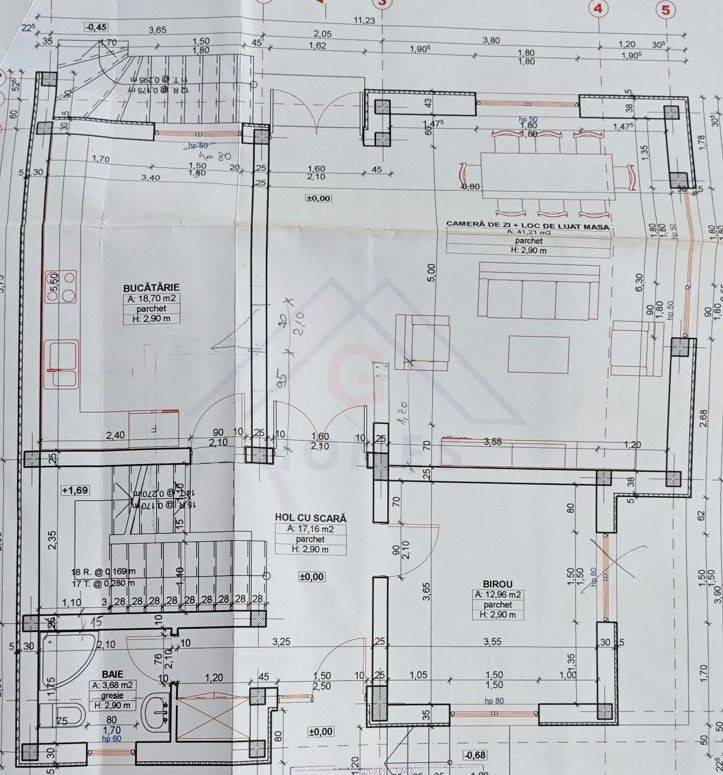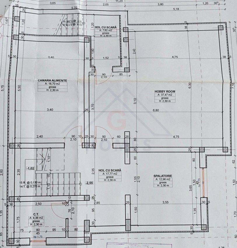 - Demisol: hol/ receptie, sala pentru recreere cu masa billiard, 2 X camera/ birou, spatiu tehnic.