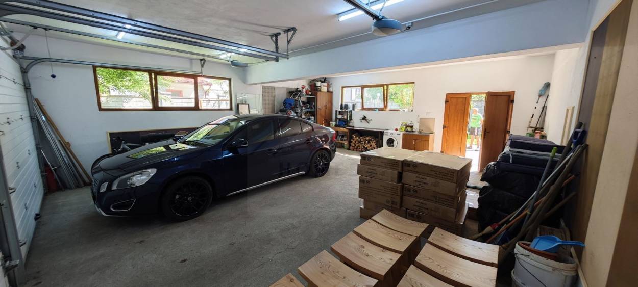 - Parter: hol/ receptie, camera mare, bucatarie inchisa, birou/ biblioteca, baie, terasa acoperita, garaj pentru doua masini.