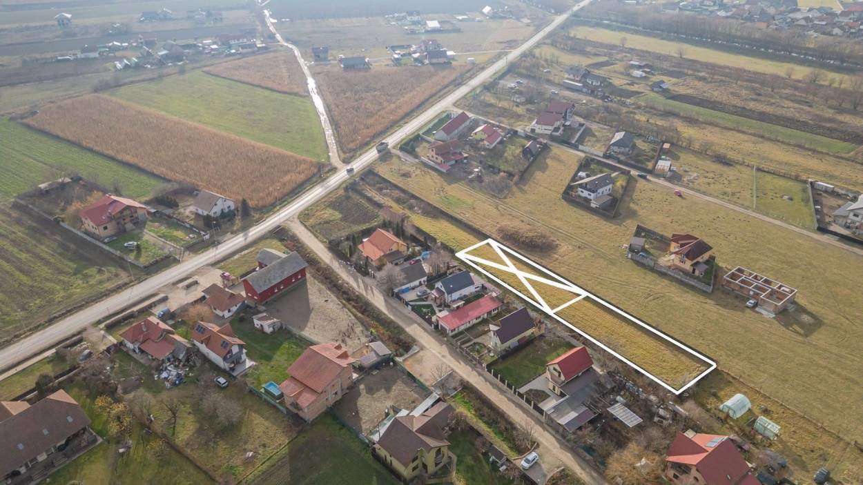 Accesul se realizează din strada principală asfaltată, continuând pe o cale de acces partajată care deservește doar patru loturi, asigurând intimitate și un flux auto redus. Conform Planului Urbanistic General (PUG), terenul este încadrat în zona de locuințe, având următorii indicatori urbanistici: regim de înălțime P+E+M, Procent de Ocupare a Terenului (P.O.T.) = 30% și Coeficient de Utilizare a Terenului (C.U.T.) = 0,80.