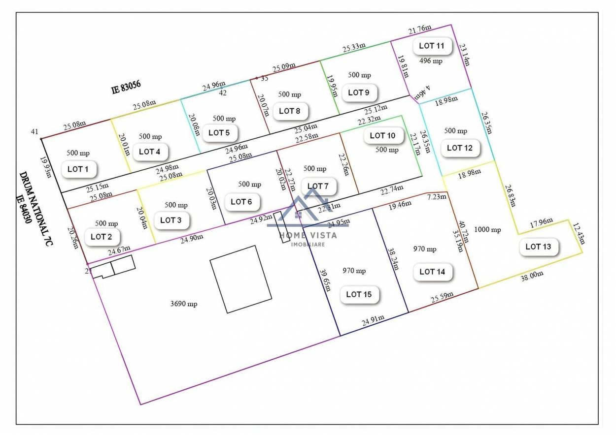 Parcelarea este formată din 15 loturi, fiecare având aproximativ: