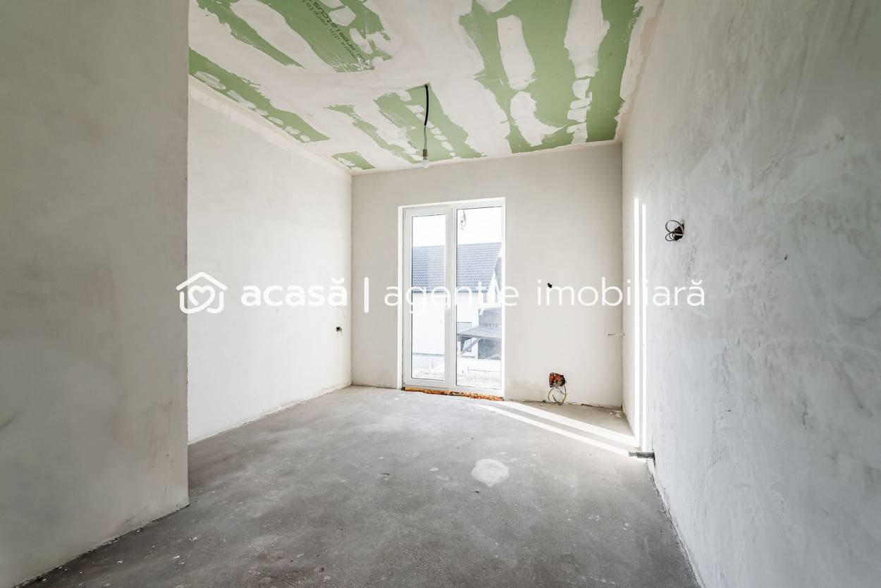 Partea stângă este semifinisată, oferindu-vă posibilitatea să o personalizați după propriul gust (parchet, gresie, uși interior, mobilier, culori pereți etc.)