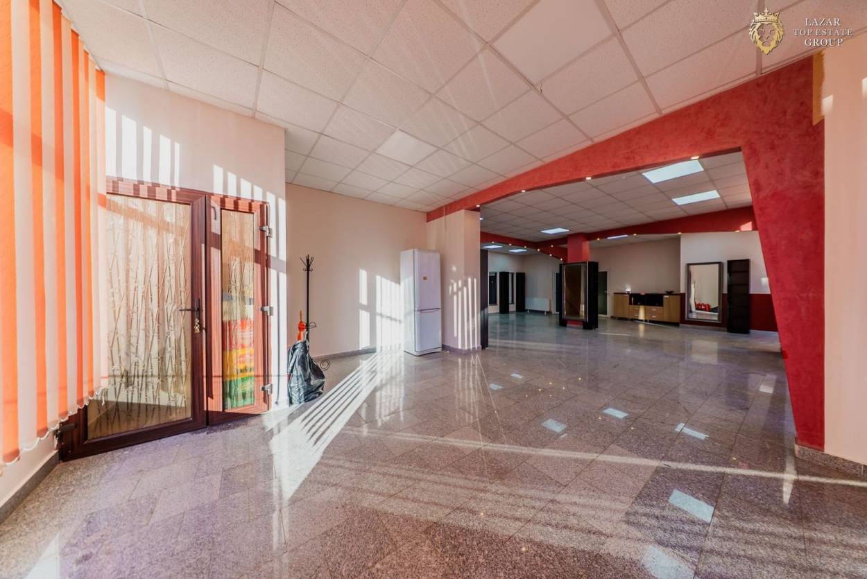 Vitrina are aproximativ 35 de metri, oferind vizibilitate foarte bună pentru promovarea activității. În apropiere există posibilitatea de parcare.