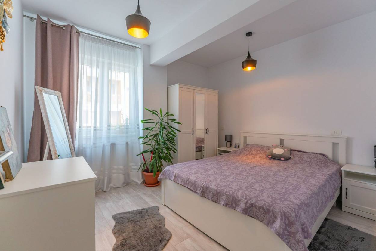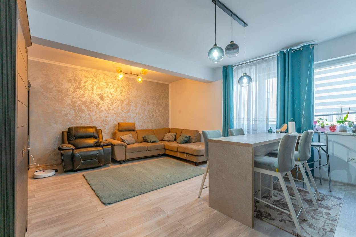 Apartamentul se vinde complet mobilat și utilat, conform fotografiilor de prezentare (cu excepția obiectelor personale și a televizorului din living), fiind pregătit pentru mutare imediată. Încălzirea și apa calda menajeră sunt asigurate prin centrala termică a blocului, cu distribuție prin calorifere, asigurând un randament termic constant. Locuința beneficiază de toate utilitățile orașului, inclusiv conexiune prin fibră optică pentru internet de mare viteză.