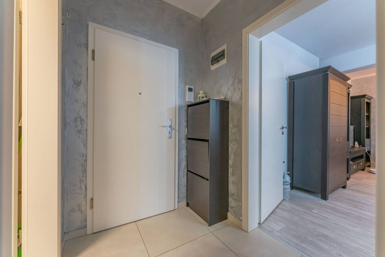 Locuința este situată la etajul 3 din 5, într-un imobil dotat cu lift, având o suprafață utilă de 46 mp. Compartimentarea este una practică, fiind formată din living și bucătărie integrate într-un spațiu deschis, un dormitor separat, baie și un hol de acces.