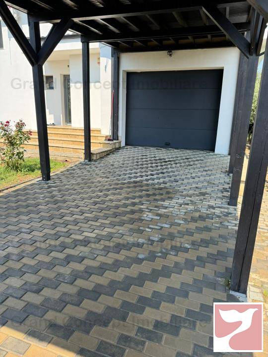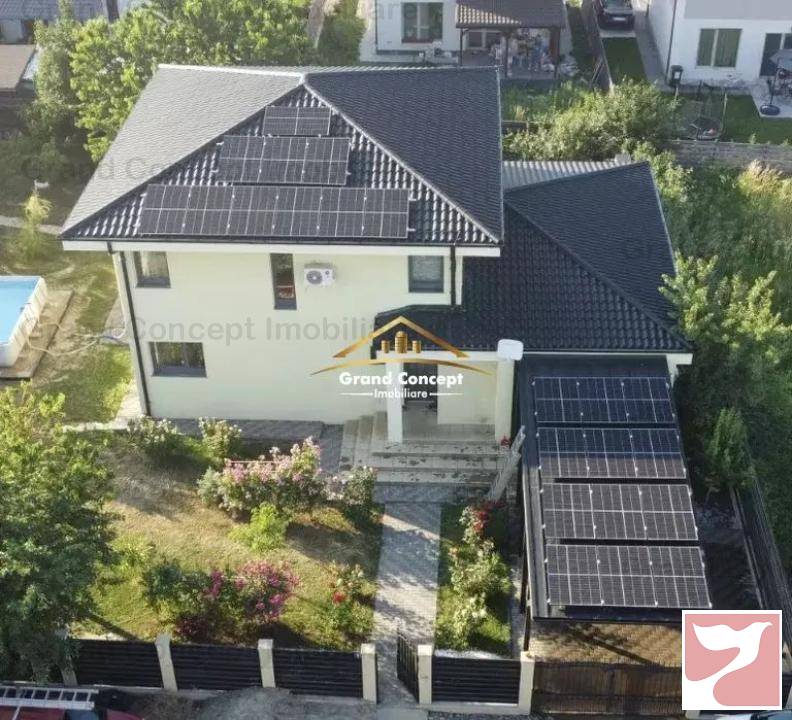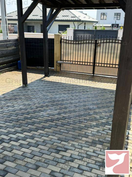 Ca si structura caramida, placa beton etaj+acoperis, fara pod, parcare pentru cea de a doua masina, sistem supraveghere video+alarma, porti automate, panouri fotovoltaice 8,8 kw, foisor cu beci 9×5.