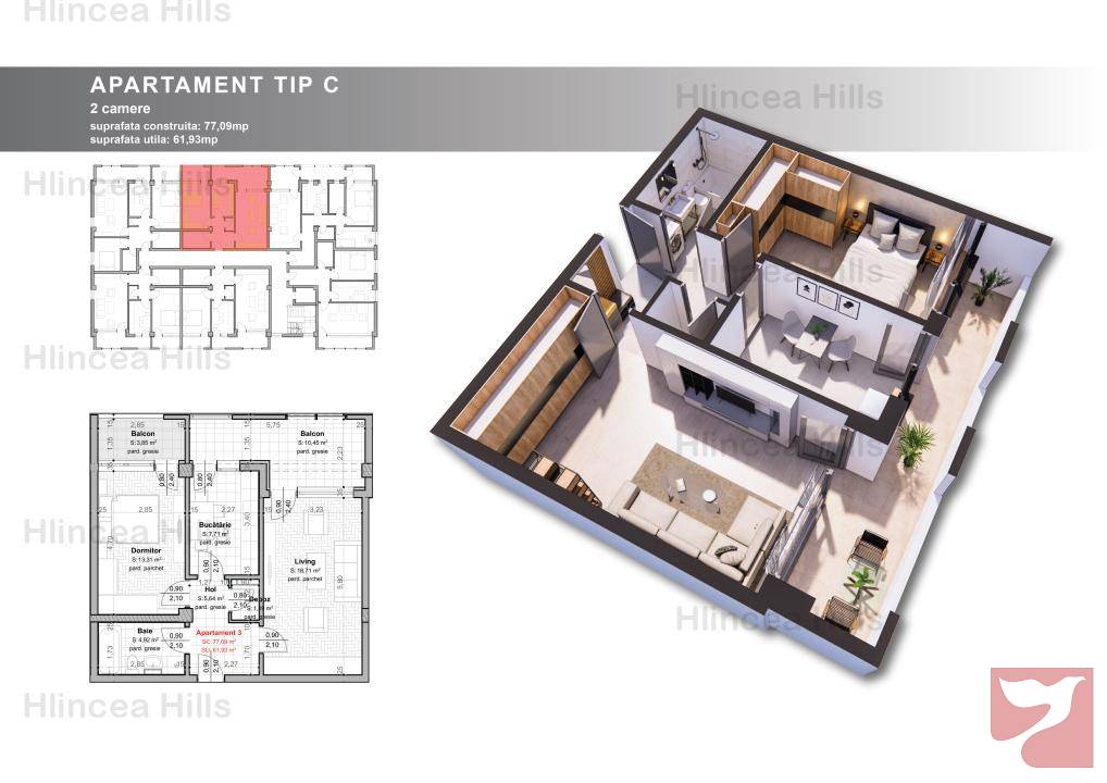 Apartament 2 camere TIP C, Hlincea Hills, fara comision
