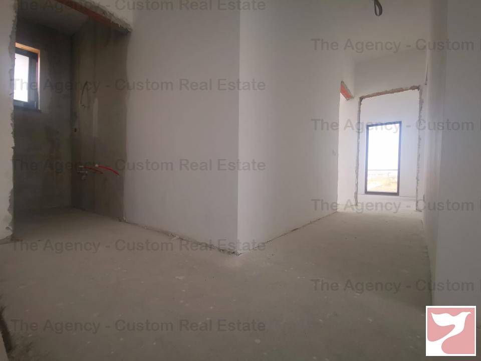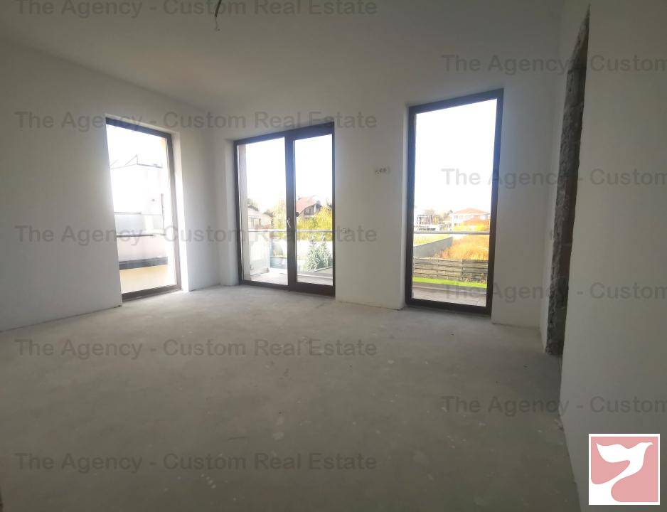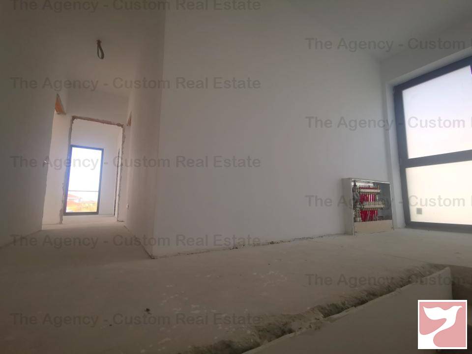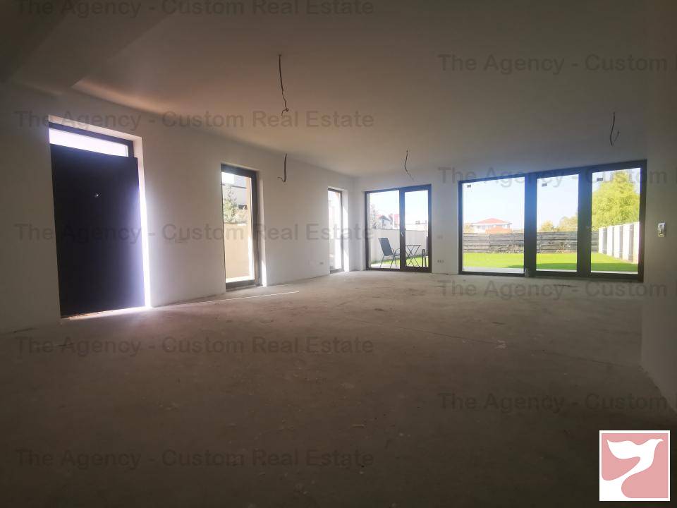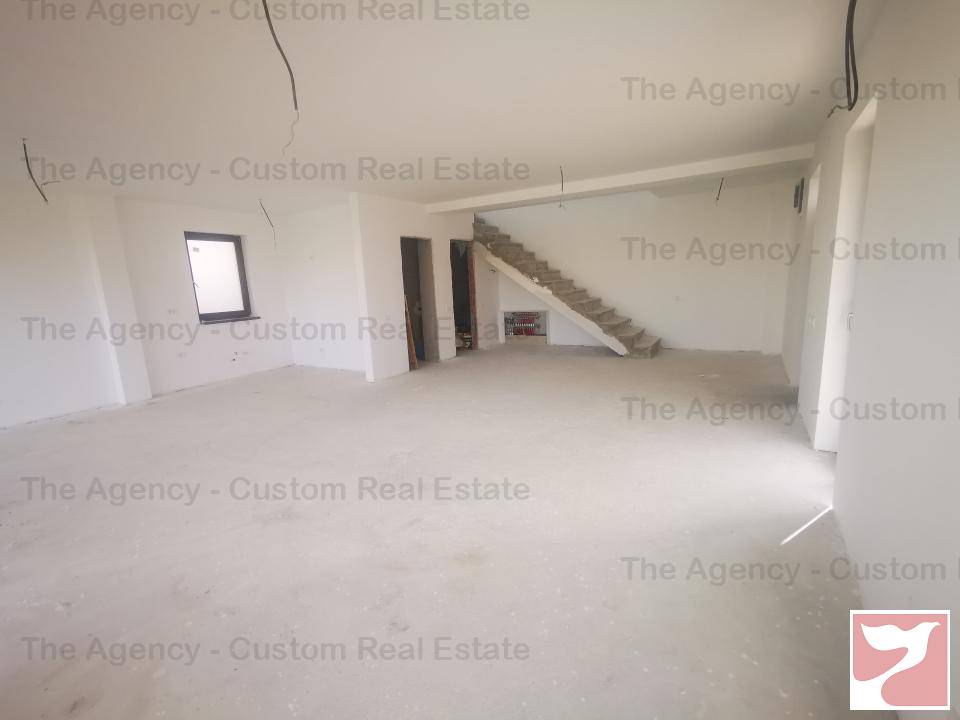 Living luminos, cu multe spatii vitrate, cu iesire pe terasa exterioara deschisa, bucatarie open space, baie cu dus, CT la parter.