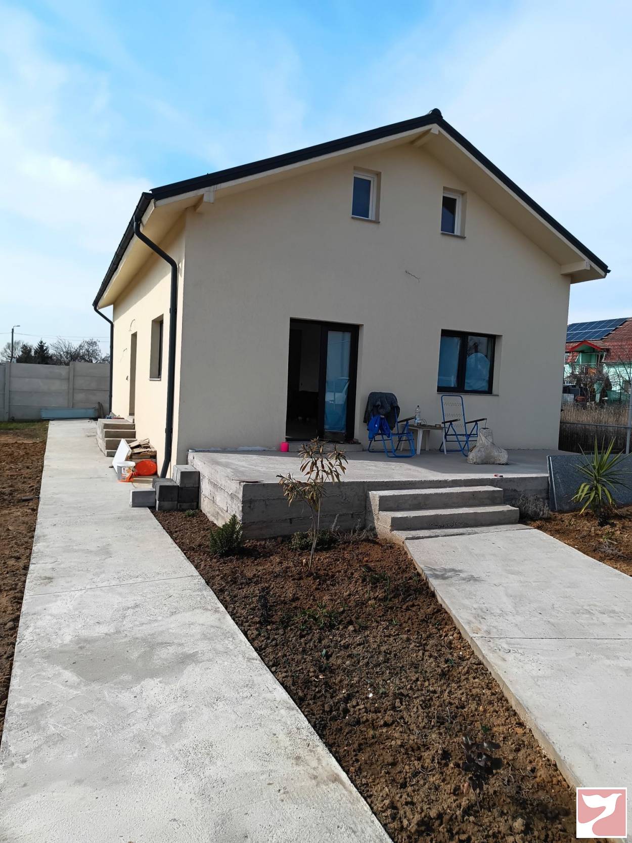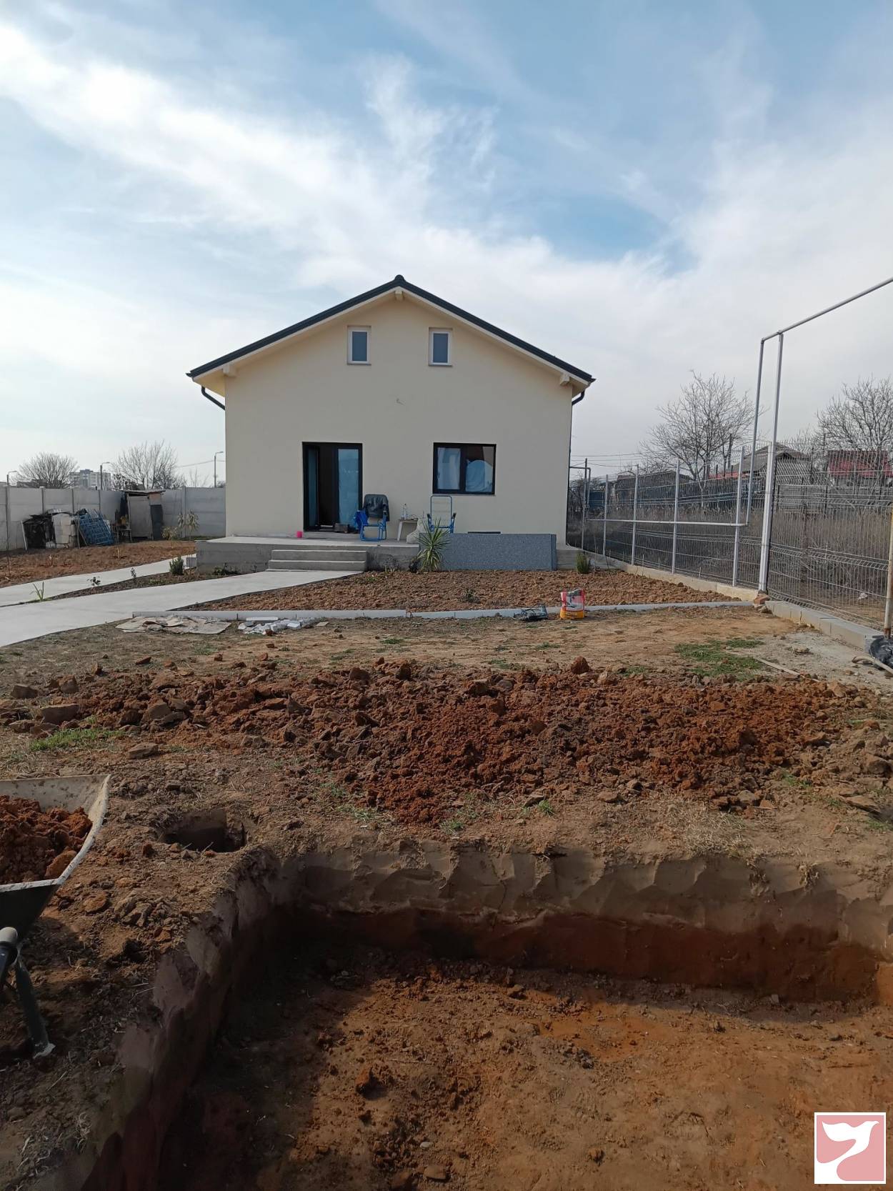 Proprietar vand casa nou construita foarte solida cu proiect respectat, fundatie pentru casa cu mai multe etaje. Are 2 dormitoare, 2 bai, bucatarie si living mare, plus beci mare si inalt cu terasa
