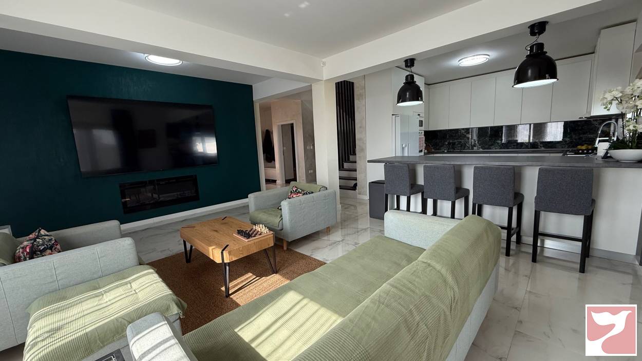 pe parter : - un dormitor, baie cu dus, living si bucatarie open space