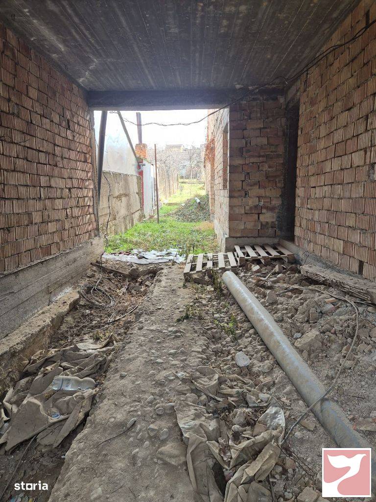 De vanzare constructie de casa in rosu cu etaj, cu intrare garaj si teren in spatele acesteia cu uz de gradina. Casa este compusa la parter de un living, bucatarie baie din hol + anexe. La etaj doua camere mari, hol, dressing, un dormitor cu baie din care inca o baie decomandata. Proprietatea se afla pe strada Oituz care este asfaltata si are posibilitate de conectare la gaz. Ptr mai multe informatii si o eventuala vizualizare la nr tel .