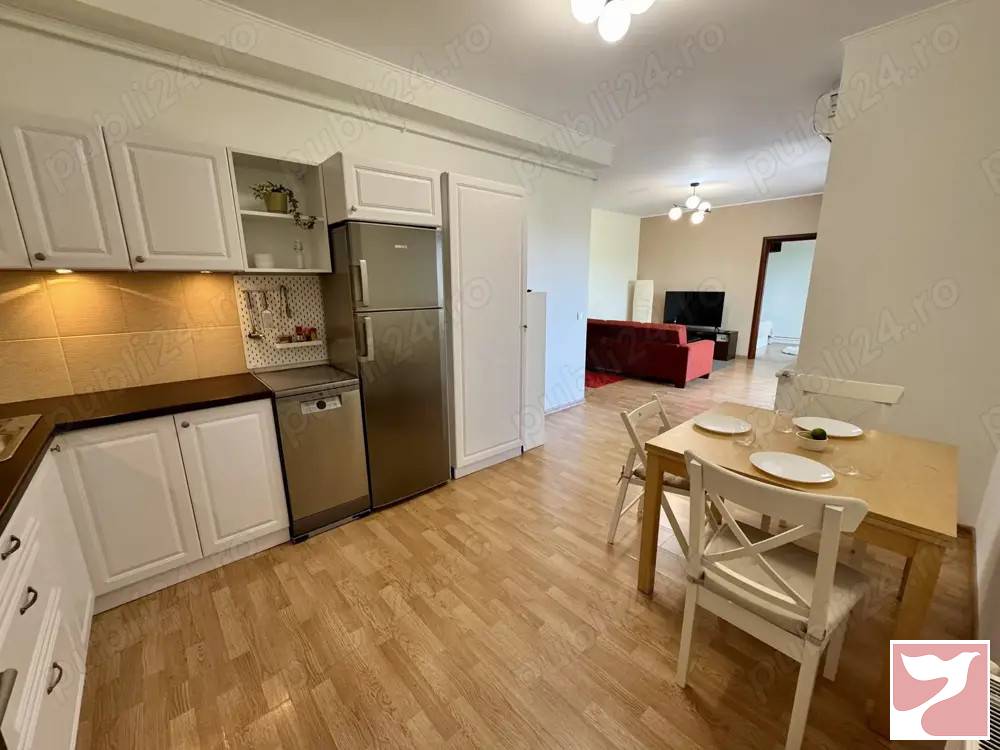 Proprietar, inchiriez apartament cu 2 camere in Pipera, situat intr-o zona linistita, pe strada Erou Chivu Dumitru. Imobilul se afla la etajul 1 din 3, intr-un bloc dat in folosinta in anul 2012.Apartamentul este semidecomandat, avand o suprafata utila de 52 mp, plus o terasa generoasa de 14 mp. Compartimentarea include un living cu bucatarie, un dormitor si un grup sanitar dotat cu cada. Apartamentul este complet mobilat si utilat: smart TV, centrala termica cu termostat, aer conditionat, masina de spalat vase si rufe, oferind confort si functionalitate. Este situat intr-o zona linistita, cu multa verdeata, in apropierea mai multor supermarketuri, farmacii, restaurante, centre comerciale, sali de fitness etc., avand acces usor catre zona de nord a capitalei sau autostrada A3. Exista numeroase mijloace de transport in comun la cateva minute de proprietate. Optional, se poate inchiria si un loc de parcare subteran la pretul de 50 de euro luna. Apartamentul este disponibil pentru inchiriere. Pentru mai multe informatii sau pentru programarea unei vizionari, va rog sa ma contactati. Nu doresc sa lucrez cu agentii.