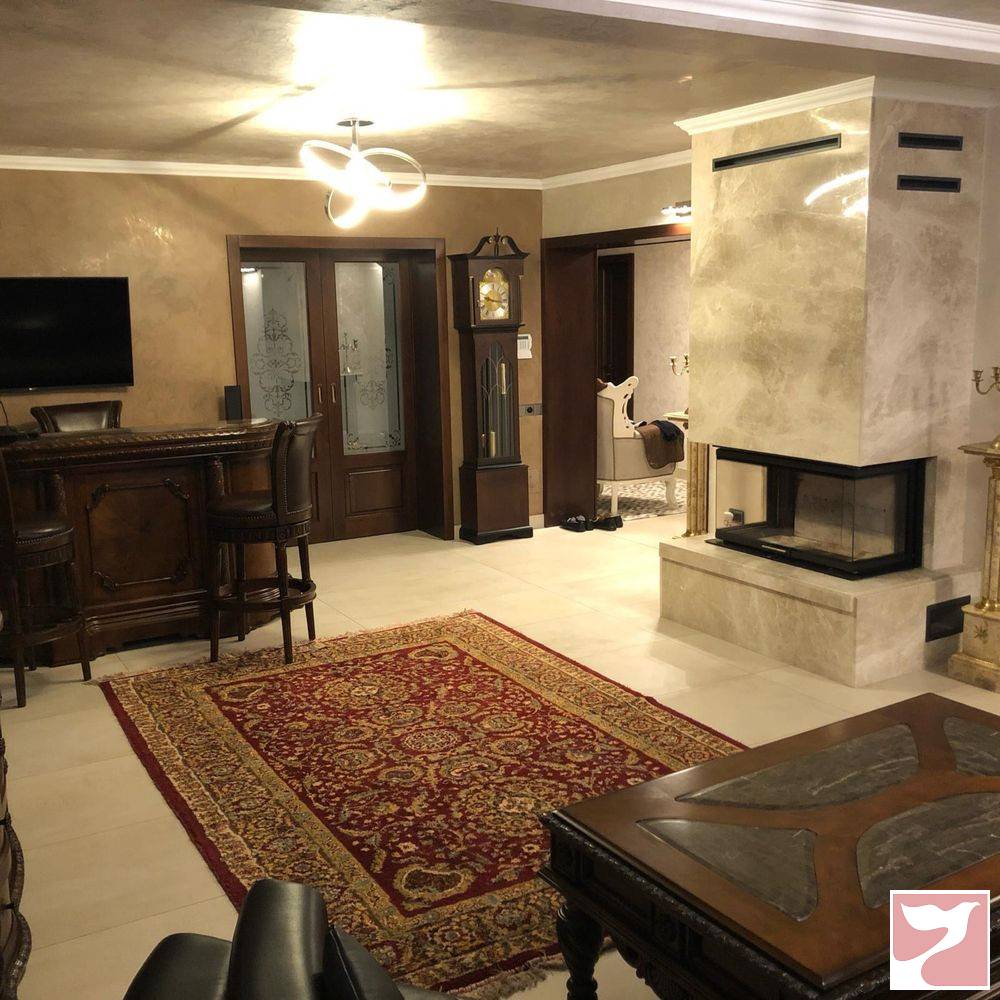 Parter-Bucatarie de 35 mp utilata gama Bosch, living cu semineu 40mp, dressing si baie