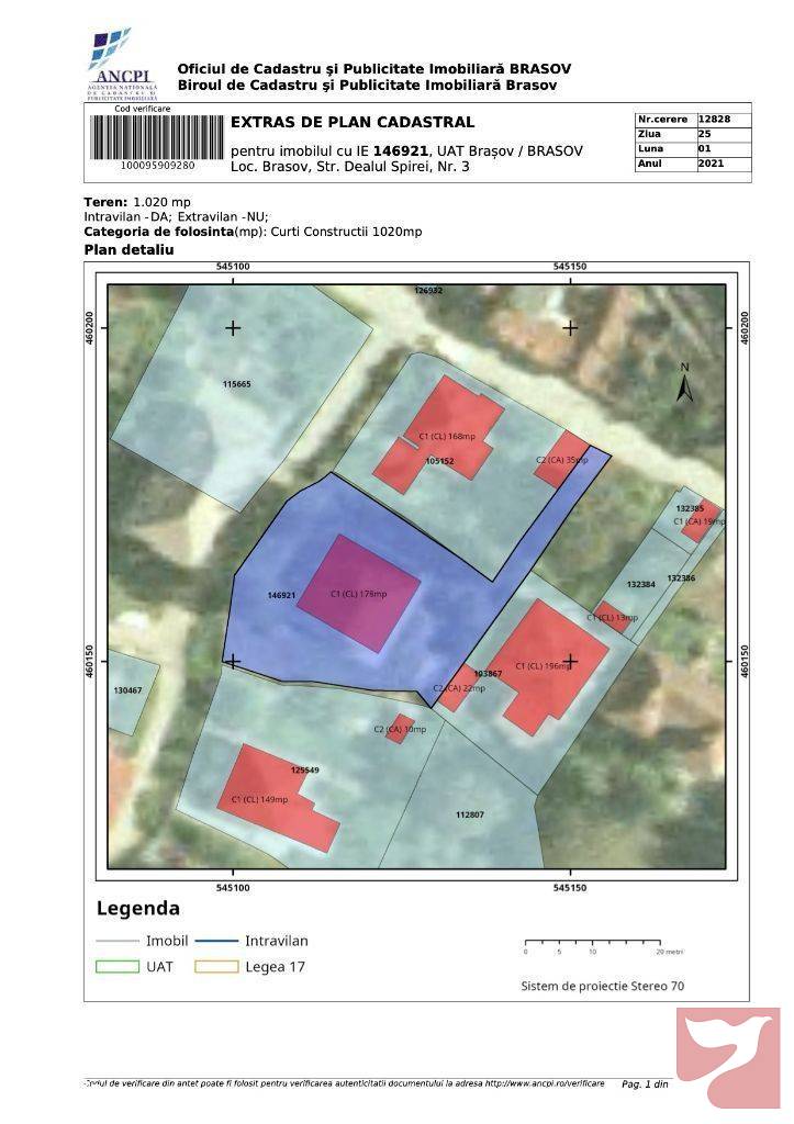 La 10 minute de mers pe jos de Piata Sfatului si totodata zona verde, linistita, ideala pentru casa de vis.Acces din 2 strazi, din Dealul Spirii acces auto si front larg cu posibilitatea acces auto la strada secundara, asfaltata.Casa necesita renovare integrala. Proiect pentru casa S+P+M inclus.Posibilitati construire conform certificat urbanism: max. P+2, POT 35%, CUT 1.