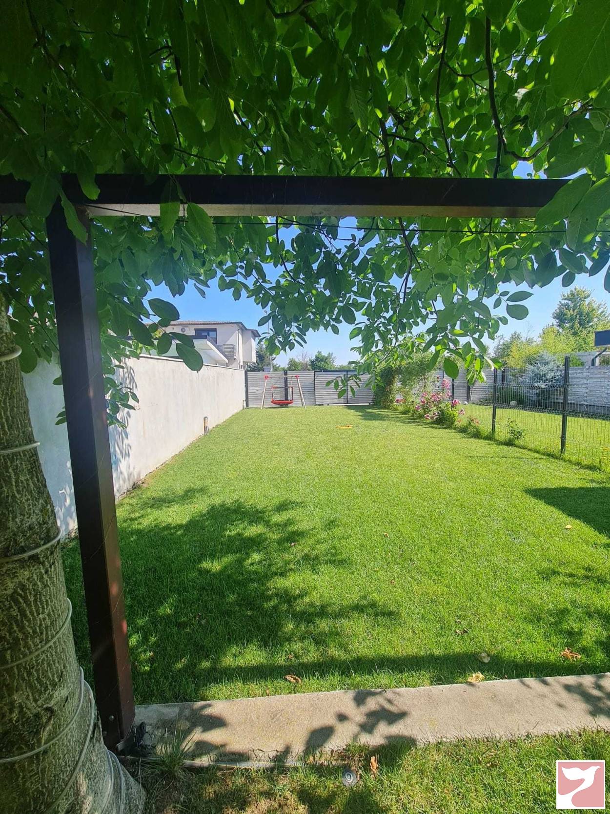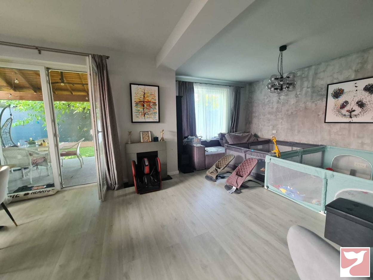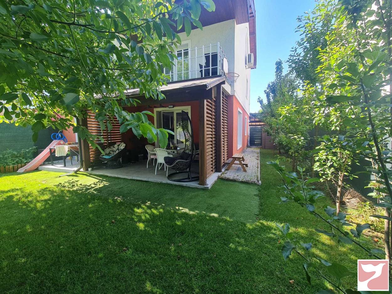 Comparativ cu restul vilelor din cartier, vila dispune de un teren suplimentar de 120mp in continuarea curtii initiale. Curtea este ideala pt constructie piscina sau orice activitati sportive