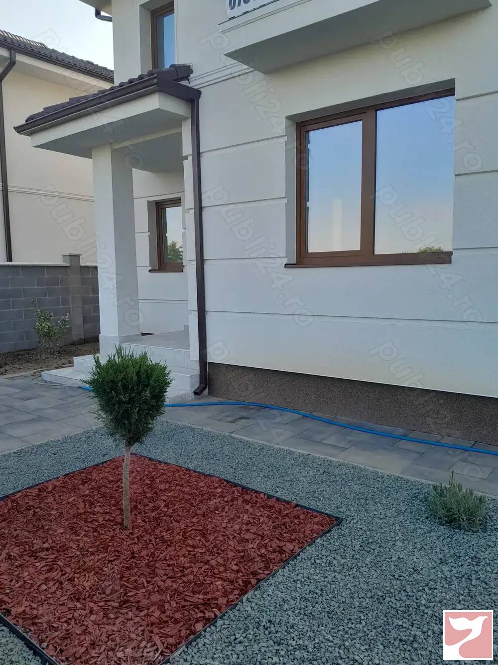 Ofer spre vanzare duplex, parter plus etaj, unit prin camera tehnica, situat in Dumbravita, zona Ion Creanga. Casa este compusa din living cu bucatarie open-space, 3 dormitoare, din care unul cu un dresing foarte generos, doua bai, camera tehnica si terasa acoperita. Materialele folosite sunt peremium, termoizolarea cu polistiren de 15 cm eps 80, tamplarie pvc tripan de la Salamander, usi interioare de la Porta, scara interioara placata cu lemn din stejar. Suprafata desfasurata este 152 mp, iar cea utila 120.Terenul aferent acesteia este 330 mp, din care 260 mp curte, amenajata cu pavaj, plante ornamentale, gazon rulouri si sistem de irigatii cu aspersoare. Dispune de toate utilitatile, apa, canal, gaz, curent, fibra optica si iluminat stradal.