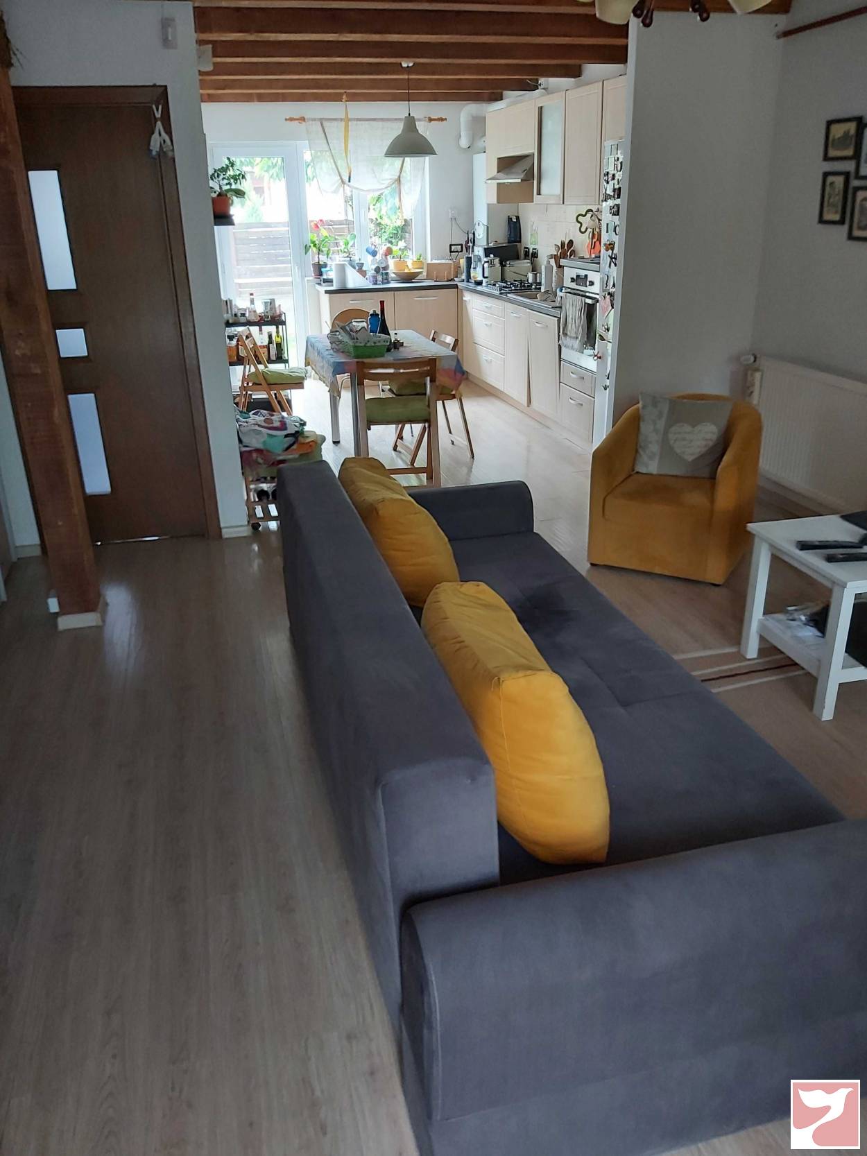 Include:terasa acoperita, living cu bucatarie open space complet mobilata si utilata (cuptor electric, plita pe gaz, masina de spalat vase), baie cu chiuveta, baie cu dus si WC, scara interioara, hol acces si 2 dormitoare, debara pentru depozitare. Proprietatea dispune de 2 locuri de parcare privata. Casa este dotata cu sistem de incalzire pe gaz prin centrala termica Ariston Class si calorifere Kermi. Casa este conectata la reteaua electrica, apa potabila, internet RDS, fosa septica. Casa este izolata cu polistiren, detine cerfificat energetic si are costuri reduse de intretinerea. Datorita pozitiei este pretabila pentru instalarea de sistem fotovoltaic. Magazine: 5 minute de Brasov (zona Coresi).