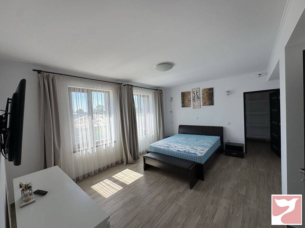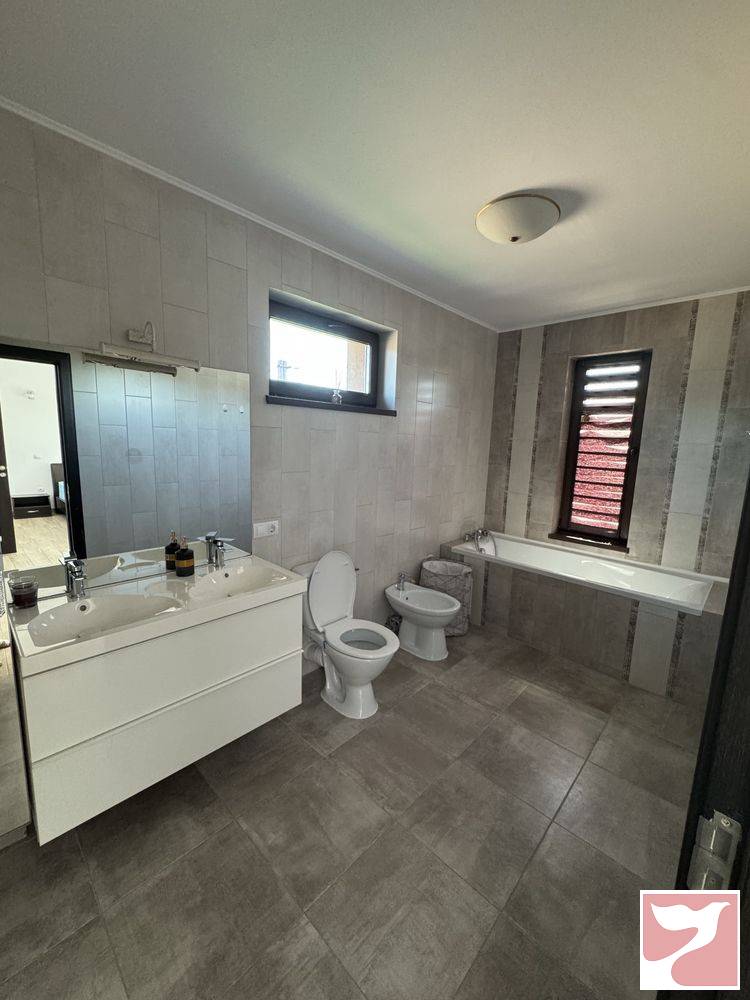Inchiriez casa complet mobilata si utilata. Este compusa din 4 dormitoare, 3 bai, bucatarie si living. Un dormitor are baie proprie si dressing. Detine si curte propie cu set de terasa si gratar. Casa este dotata cu panouri fotovoltaice, factura energie electrica foarte mica. Pentru mai multe detalii ne puteti contacta. Nu acceptam animale de companie.