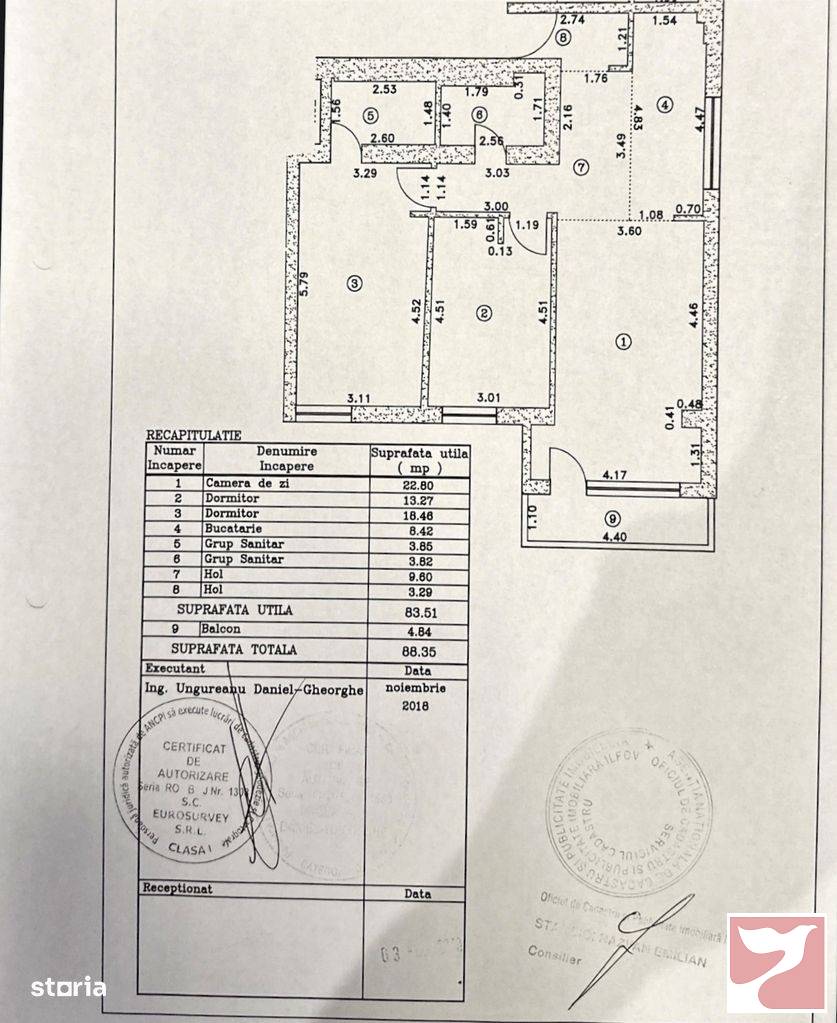 Proprietar, vand apartament cu 3 camere, decomandat, in complex rezidential 4 City North Pipera.Apartamentul este situat la etajul 4 din 7 si este orientat catre Sud-Vest, asigurand o lumina excelenta pe tot parcursul zilei.Detalii apartament:Suprafata utila: 83.51 mpSuprafata terasa: 4.84 mpSuprafata totala: 88.35 mpCompartimentare: decomandatEtaj: 4 din 7Numar camere:3Bai: 2Finisaje: Usa intrare cu inchidere multipunct Dierre, Usi interior Filomuro, Gresie si faianta Porcelanosa, Obiecte sanitare Roca, parchet Egger Pro, Tamplarie Salamander cu geam tripan, Prize si intrerupatoare Panasonic, Corpuri de iluminat Philips Hue cu intrerupatoare dedicate, benzi led incastrate in peretiFinisaje si utilitati complex: lifturi Kone, marmura in spatiile comune, parc interior privat in suprafata de aprox. 14.000 mp, paza si serviciu pompieri permanent, camera supraveghere.Mobilat: completUtilat: Masina de spalat vase Bosch, plita si hota Franke, Cuptor Whirlpool, frigider side-by-side cu dozator de apa (cu filtru) si dispencer de gheata Samsung, masina de spalat rufe LG, Aparate de aer conditionat Mitsubishi in fiecare cameraIncalzire: centrala proprie AristonApartamentul dispune si de doua locuri de parcare subterane amplasate consecutiv si in imediata proximitate a intrarii in scara. Acestea se vand separat.4 City North este un complex rezidential dezvoltat de catre Eden Capital Development si se situeaza in zona de Nord a Bucurestiului, in vecinatatea Promenada Mall, Pipera Plaza, Dimitrie Pompeiu.Pentru mai multe detalii si programarea unei vizionari, va rog sa ma contactati la numarul de telefon din anunt.