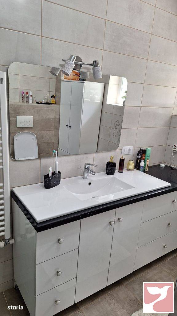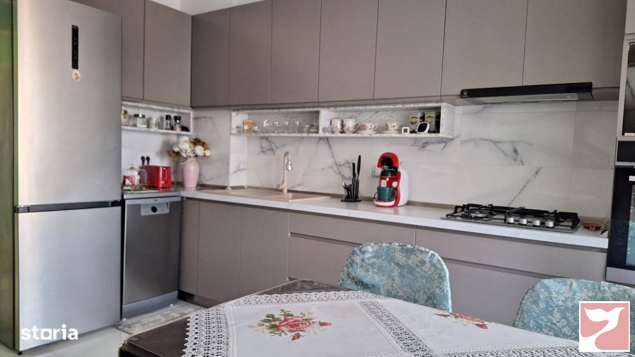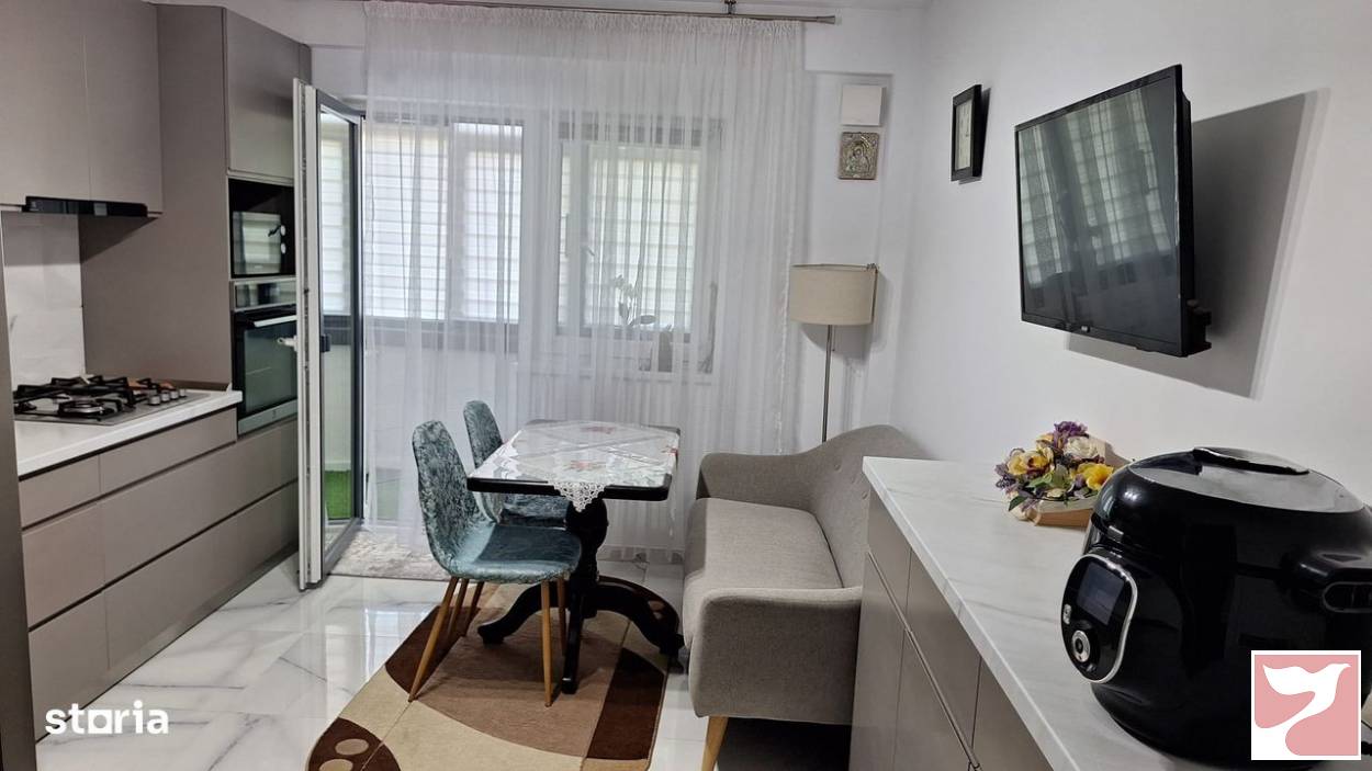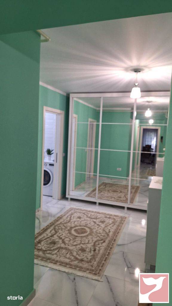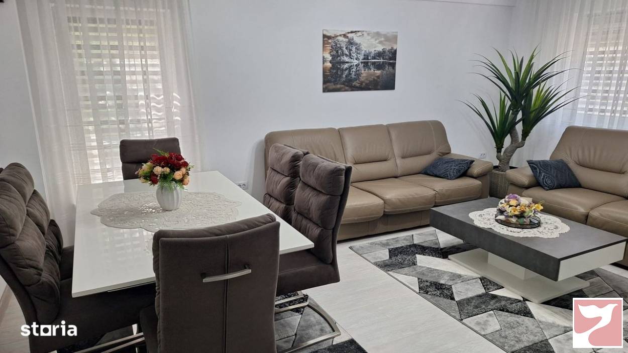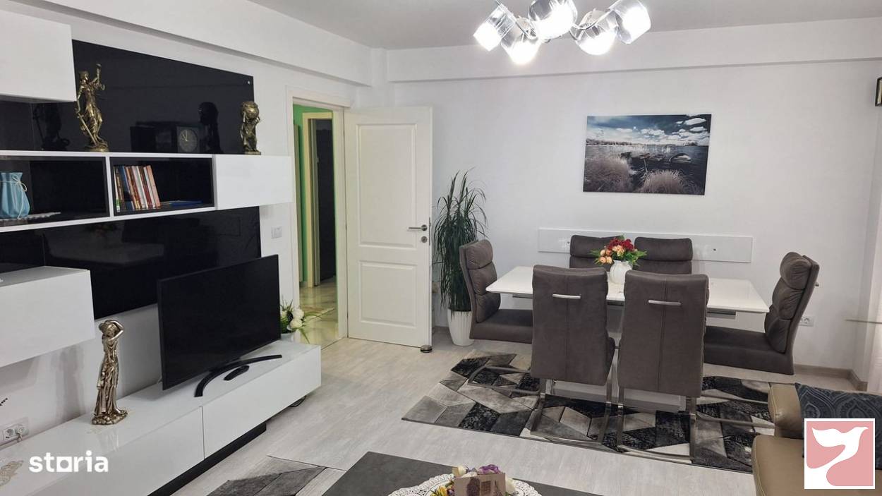 Vand imobil in bloc nou, situat in zona Parcului Eminescu, capat tramvai 1 si autogara RVG.Detalii apartment:3 camere spatioase, 2 bai, hol generos, dressing, bucatarie inchisasuprafata utila de 104mp, etaj 3 din 4, in bloc cu lift si acces cu interfon2 balcoane de 10mp inchiseloc de parcare inclusDotari:aer conditionatjaluzele exterioare din aluminiuincalzire mixta: prin calorifere si prin pardosealageamuri tripanse vinde complet mobilat modern si utilat, cu masina de spalat vase, cuptor, aragaz, frigider etcIn apropiere aveti piata, spatii comerciale, farmacii, mijloace de transport, institutii sanitare si de invatamant.