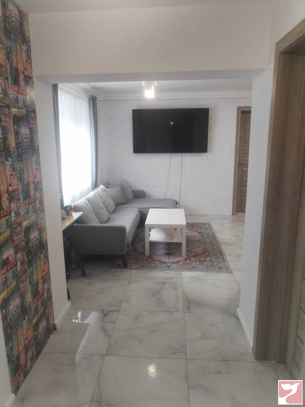 -living cu perete placat din piatra premium