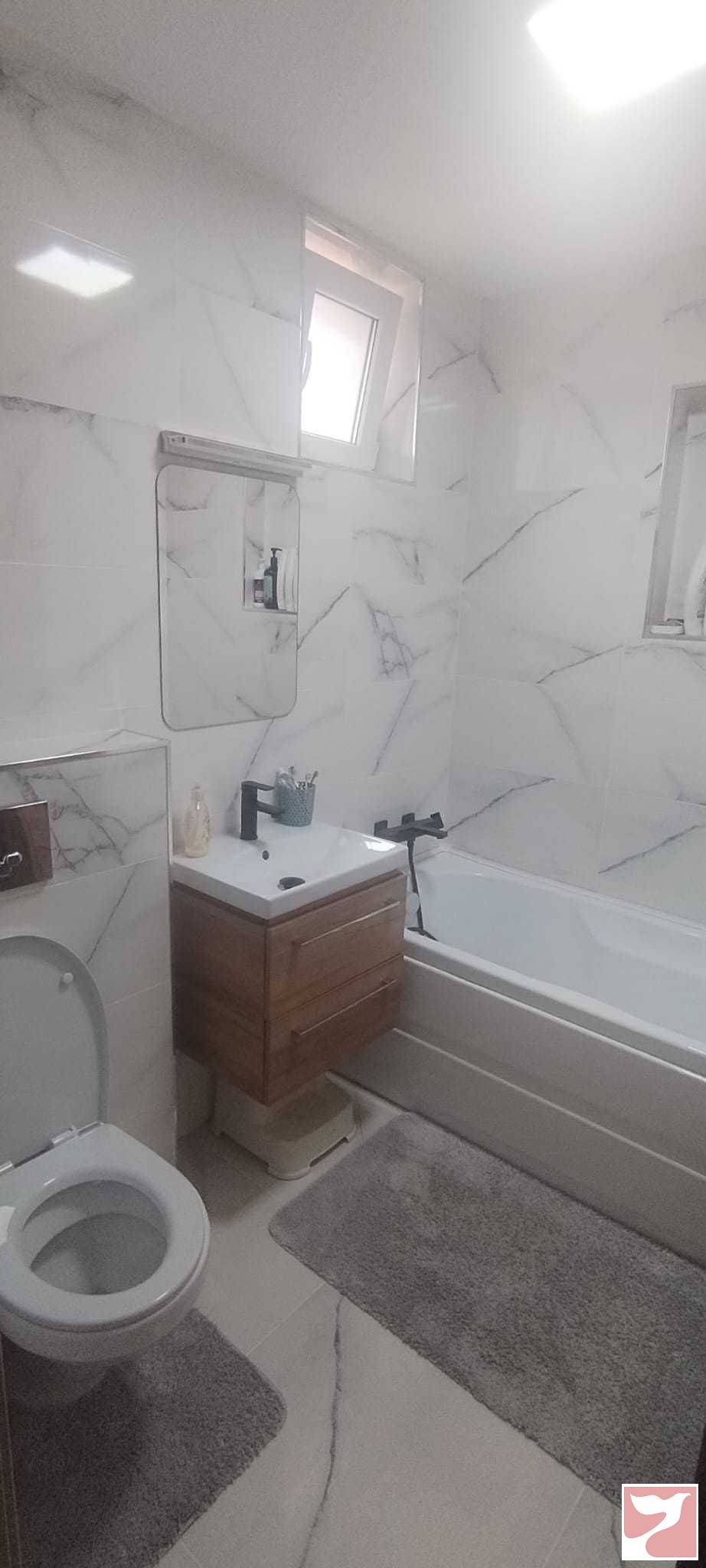 -baie complet utilata si mobilata, cu toaleta incastrata si cada de baie