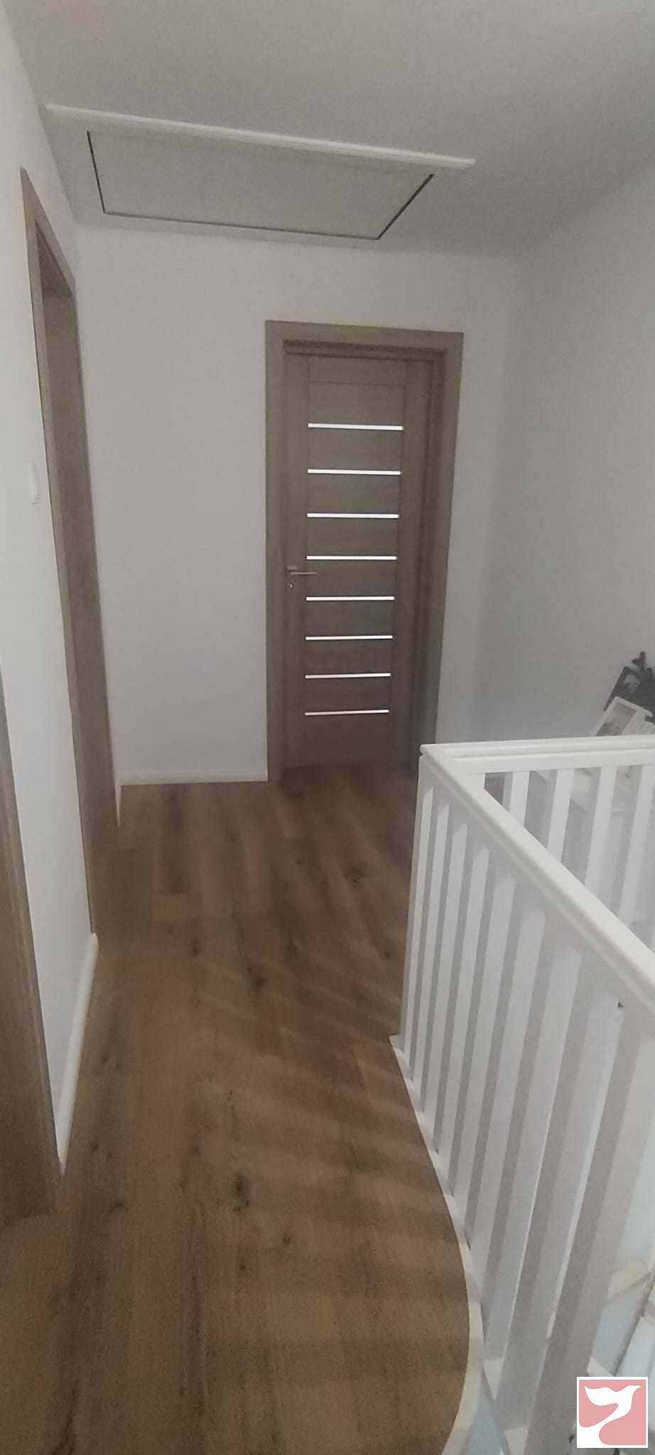 -hol generos, cu spatiu inchis tip dulap unde se afla masina de spalat, distribuitorul pentru incalzirea in pardoseala de la parter, centrala termica