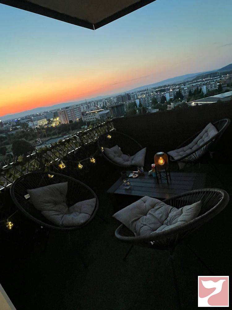 Balcon amenajat cu set de masa si scaune