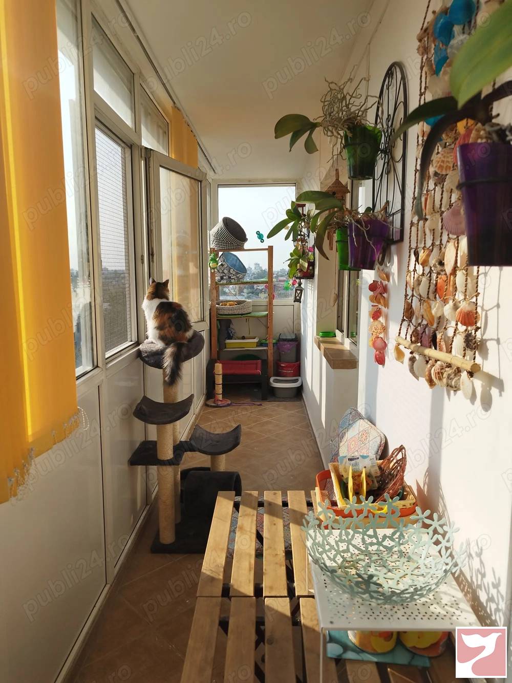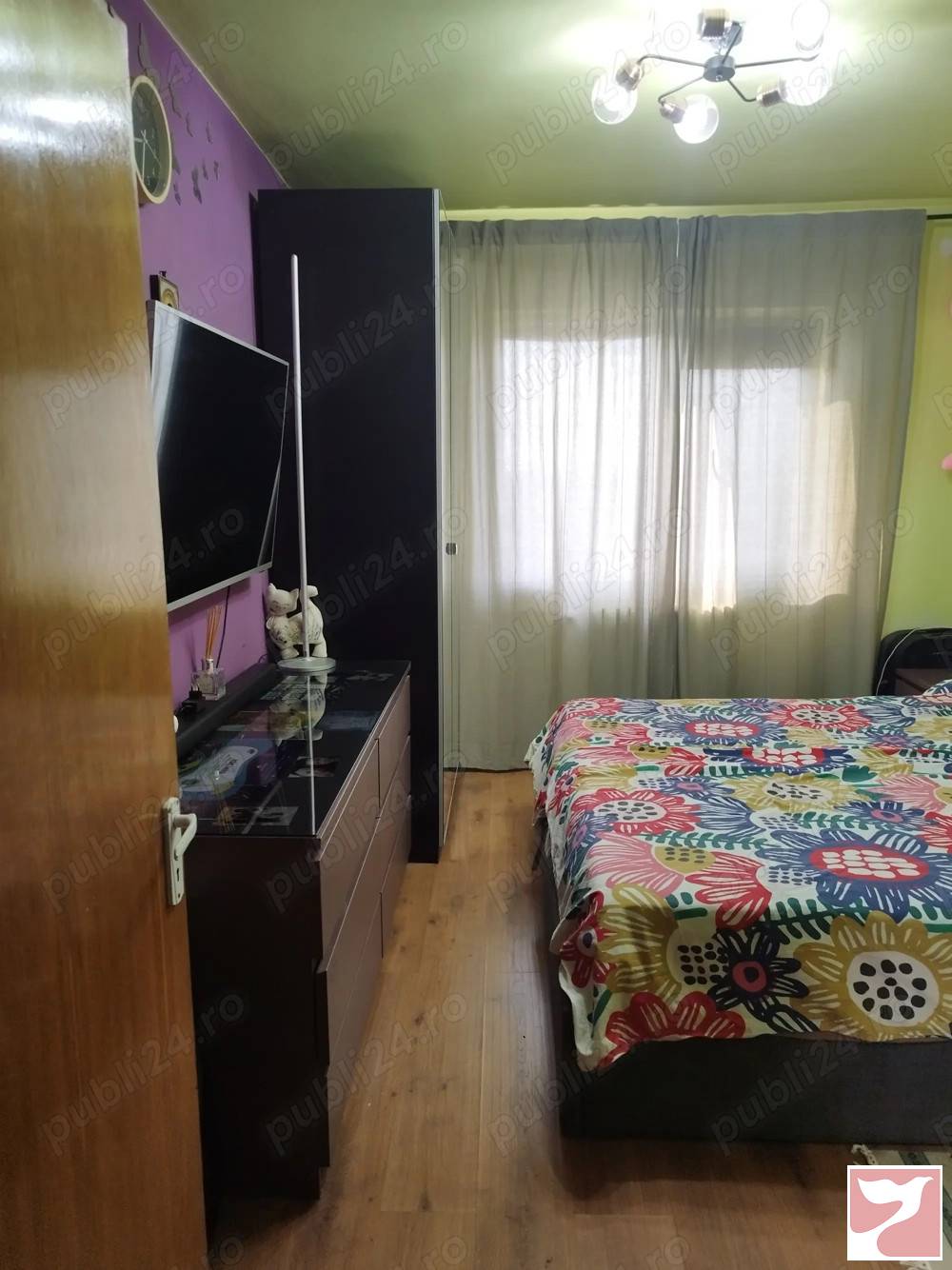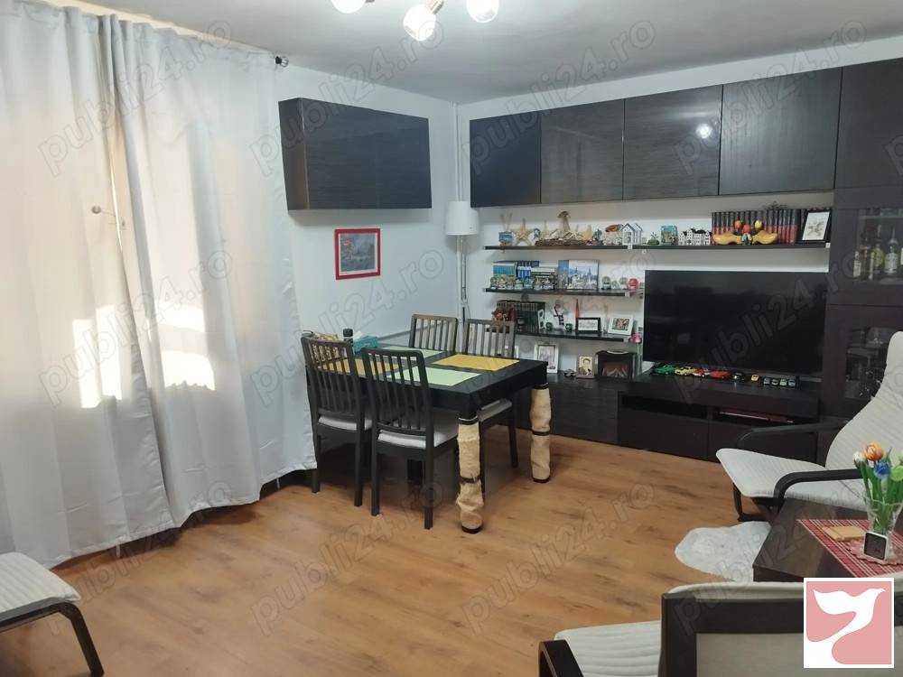 Apartament de 4 camere: 3 dormitoare, 1 living, 2 bai si balcon de 9m patrati. Etajul 6 din 10Zona linistita, 3 parcuri, acces oras din 3 laturi cu 4 mijloace de transport in comun (101, 102, 5, 30), parcari la liber in fata si in spate, precum si parcare privata cu plata in fata blocului. Nu este la strada principala, deci nu exista probleme de zgomot de trafic. In zona se afla un shopping mall, spital, magazine. Bloc construit in 1974 din beton armat (ca sa montati in pereti va trebuie bormasina cu percutie), foarte rezistent, reabilitat termic de catre proprietari, nu de catre primarie. Casa scarii patrata si spatioasa. 2 lifturi modernizate. Toate apartamentele au repartitoare de caldura si de apa. Apartamentul este decomandat si are o dispunere spatioasa cu 3 holuri:Din holul de la intrare se acceseaza debaraua, baia mare si dormitorul matrimonial. Din holul patrat mare se deschid bucataria, livingul, camara, 1 dormitor si vestibulul care duce la un alt dormitor si baia de serviciu. Se vinde mobilat, utilat cu frigider, masina spalat rufe, uscator rufe, aer conditionat. La balcon si dormitorul matrimonial s au montat plase speciale pentru pisici.