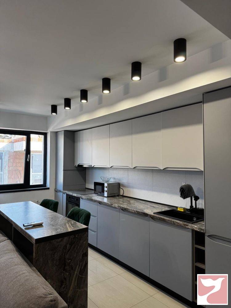 Ofer spre inchiriere apartament 2 camere: compus dintr-un dormitor, living, bucatarie, baie, dinning si balcon spatios. Mobilat si utilat. Suprafara de 57mp + balcon de 6, 12mp