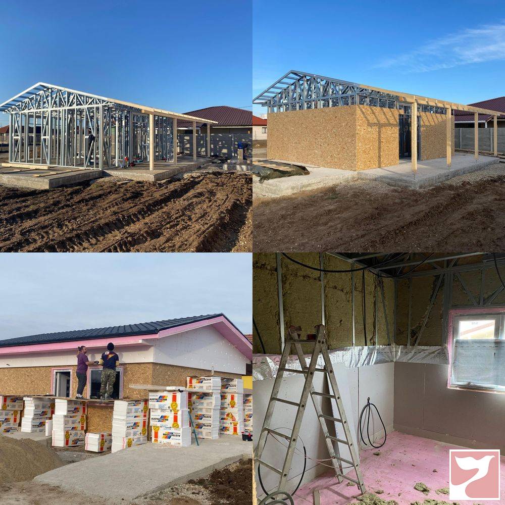 Vand casa pe structura Mexi, an 2022, luata in folosinta in 2024, structura otel galvanizat cu garantie 50 ani. Suprafata construita a casei este de 55 mp iar cu garaj, terasa acoperita si filigorie 100mp. Casa este impartita in living cu bucatarie, o camera, baie si o camara plus garaj, terasa acoperita si filigorie din lemn. Casa este placata cu polistiren de 10 cm, sub care avem osb, structura metalica este de 10 cm si este izolata cu vata, apoi avem folie anticondens si doua straturi de rigips. Tavanul este izolat cu spuma poliuretanica iar podeaua cu polistiren extrudat. Incalzirea este cu centrala pe curent, iar apa calda cu boiler electric. Incalzirea este in pardoseala. Casa este racordata la apa si canalizare de la retea si la curentul electric. Daca doriti mai multe informatii va rog sa ma sunati.