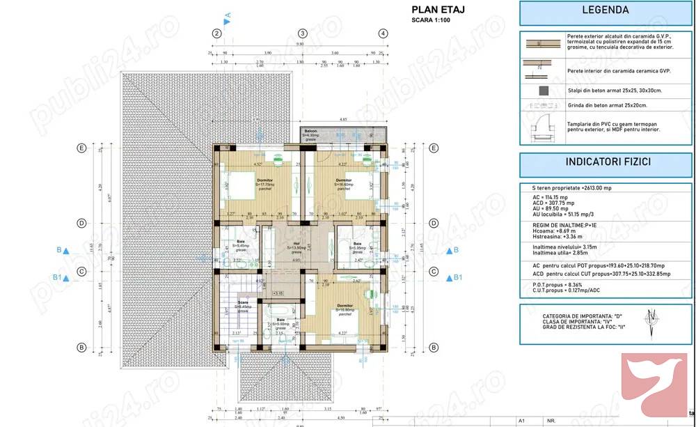 Casa cu etaj, pe teren de 2600 mp. Parterul 143mp: finisat la cheie in ianuarie 2025 si mobilat, dormitor cu baie cu cada, dormitor, living, baie cu dus, bucatarie, camera tehnica 16mp cu centrala si masina spalat rufe utilizabila si ca dormitor. bucatarie complet mobilata si utilata, masina spalat vase hota si plita 90cm, combina frigorifica 90cm, trei intrari, terasa exterioara 27mpEtajul 90mp: 3 dormitoare cu baie individuala si hol, nefinalizat, (instalatii electrice terminate apoi lucrarile s-au oprit) izolat cu perete provizoriu de parter si intrare separata cu terasa2x Poduri cu acces pentru depozitare Proiect cu autorizatie de constructie valabila pana in 2027, Include plan foisor si imprejmuire. Plan urbanistic prevede maxim 2 case pe acelasi teren, posibilitate parcelare in 2 parti de 800mp si 1800mp. Racordata la utilitati apa, gaze, lumina, RDS+ Orange pe fibra subteranaFosa 4000L pentru minim 6 persoane, cu pat de dren realizat profesionist de 50ml intinsi in 3 brate pe suprafata de 60mp, nu necesita vidanjare. Vedere deosebita asupra orasuluiZona linistita, impadurita, in Bucium spre PaunDrum asfaltat. Fara ipoteca pe teren sau imobil. Nu se pot accepta variante cu credit imobiliar, doar plata completa. Imobilul nu este inca receptionat, etajul fiind in stadiul de constructie.