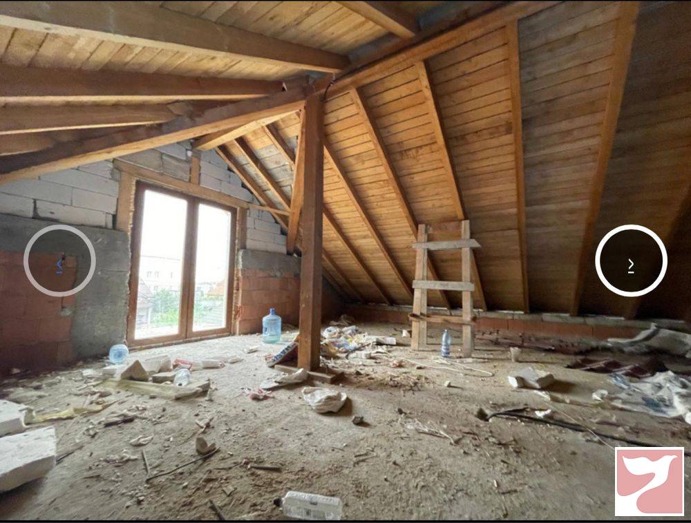 Casa semifinisata, construita in regim P+1 si un teren aferent de 710mp, situata in imediata vecinatate a cartierului Bariera Valcii din Craiova, in proximitatea centurii de Nord. Casa este edificata din caramida si are urmatoarea compartimentare: la intrare avem o terasa de 4.70mp din care se face intrarea intr-un living de 46, 25mp. Din living se poate trece catre bucataria inchisa de 15, 25mp si catre un dormitor de 12, 8mp. La etaj exista un hol din care se acceseaza cele 3 dormitoare de 20, 65mp, 15, 25mp, respectiv de 12, 8mp si baia de 6, 5mp. Unul dintre dormitoare este prevazut cu un balcon de 5, 35mp. Casa poate fi racordata la toate utilitatile si se vinde la stadiul de semifinisat, asa cum apare in fotografii. Terenul are o deschidere de 15, 63m. Pentru detalii suplimentare, va invitam sa va programati pentru o vizionare!
