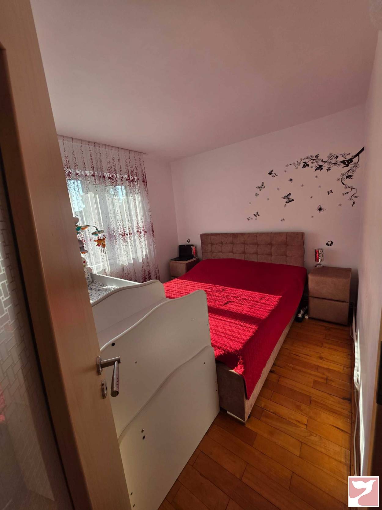 Dormitor nou dulap usi culisante pat somiera rabatabila si noptiere tapitate, izolat interior